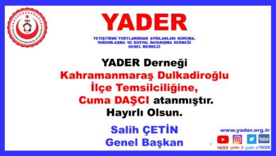 YADER Derneği İstanbul İl Başkanlığına, Cihangir KOCAMAN atanmıştır. Hayırlı Olsun. Salih ÇETİN Genel Başkan