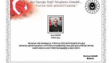Şehit kardeşimiz Enes Özgül’ün cenazesi 5 Temmuz 2022 salı günü, öğle namazından sonra İstanbul Ataköy Ömer Duruk Camisi’nden kaldırılıp, Edirnekapı…