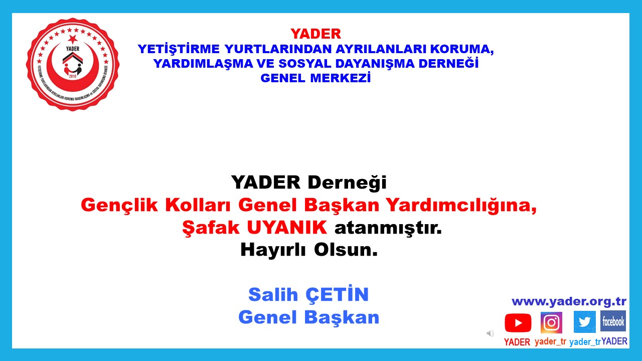 DERNEĞİMİZ GENÇLİK KOLLARI GENEL BAŞKAN YARDIMCILIĞINA ŞAFAK UYANIK ATANDI.