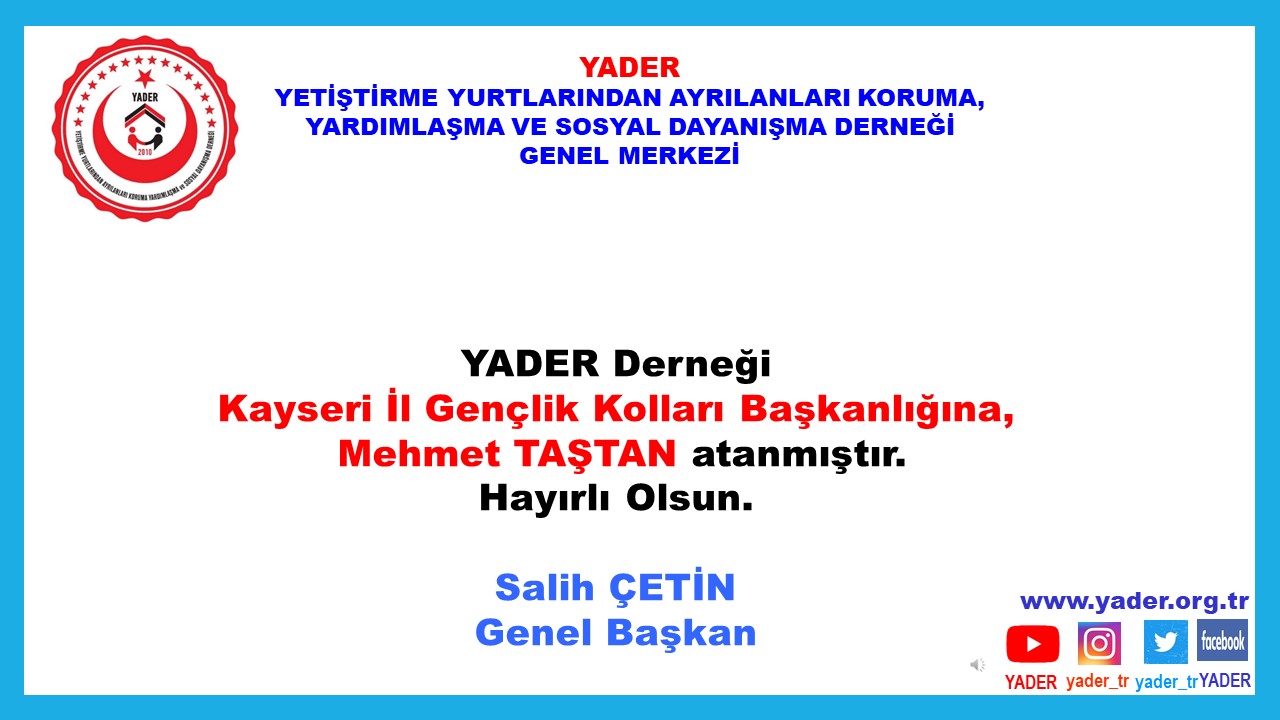 DERNEĞİMİZ KAYSERİ İL GENÇLİK KOLLARI BAŞKANLIĞINA MEHMET TAŞTAN ATANDI.