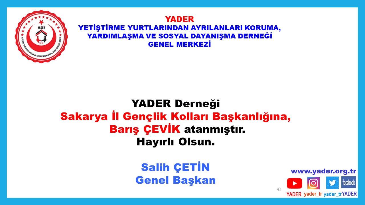 DERNEĞİMİZ SAKARYA İL GENÇLİK KOLLARI BAŞKANLIĞINA BARIŞ ÇEVİK ATANDI.