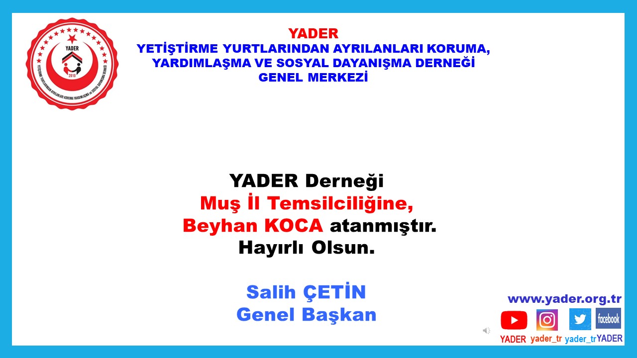 DERNEĞİMİZ MUŞ İL TEMSİLCİLİĞİNE BEYHAN KOCA ATANDI.