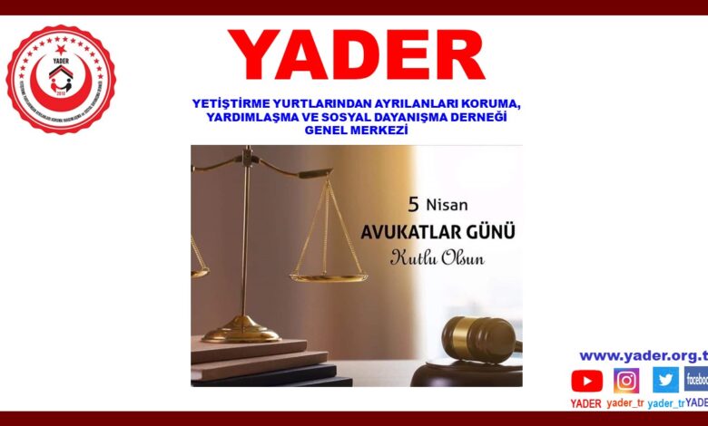 Aynı zamanda Avukat olan; Aile ve Sosyal Hizmetler Bakanı Kıymetli Bakanımız Sn. Derya YANIK @deryayanikashb, Bakan Yardımcılarımız Sn. İsmail ERGÜNEŞ @ismailerguness ile Sn. Fatma ÖNCÜ @avfatmaoncu, Hukuk Hizmetleri Genel Müdürü @ACSHB_HHGM Genel Müdürü Sn Hakan AY @AvHakanAy , Kamuda Avukat olarak istihdam edilen kardeşlerimiz ve Avukatların; 5 Nisan Avukatlar Günü’nü tebrik ediyoruz. #YADER