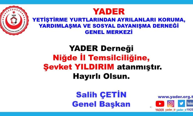 Derneğimiz Niğde İl Başkanlığına Şevket YILDIRIM Atandı.