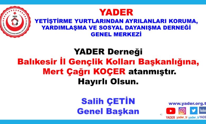 Derneğimiz Balıkesir İl Gençlik Kolları Başkanlığına Mert Çağrı KOÇER Atandı.