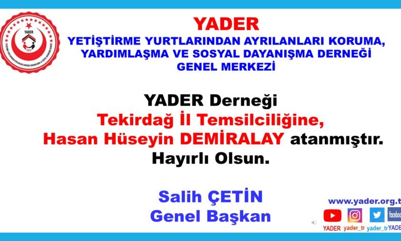 Derneğimiz Tekirdağ İl Başkanlığına Hasan Hüseyin DEMİRALAY Atandı.