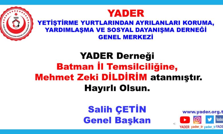 Derneğimiz Batman İl Başkanlığına Mehmet Zeki DİLDİRİM Atandı.