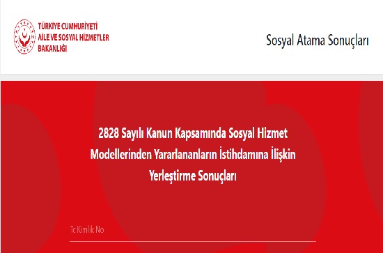 KURA SONUÇLARI İÇİN TIKLAYIN https://sosyalatama.aile.gov.tr/2828-sayili-kanun-kapsaminda-sosyal-hizmet-modellerinden-yararlananlarin-istihdamina-iliskin-yerlestirme-sonuclari-03-11-2021/